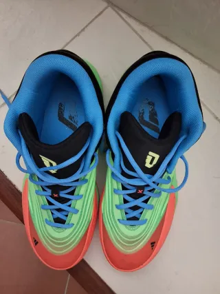 Zapatillas deportivas Adidas (semibota) en llamativos tonos verdes y naranjas. Diseñadas para ofrecer comodidad y estilo. - Combinación de colores vibrantes. - Cierre con cordones. - Detalle de logo en la plantilla.