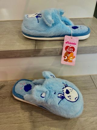 Adorables zapatillas de estar en casa con el diseño de los Care Bears. - Suaves y cómodas. - Diseño de oso azul. - Marcan número 40/41 pero dan poca talla son perfectas para un 37,5 38 o 38,5 - Totalmente nuevas a estrenar.