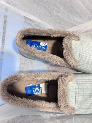 Comodísimas zapatillas de estar por casa con un suave forro interior. - Exterior de pana acanalada. - Forro interior de pelo sintético. - Suela antideslizante.