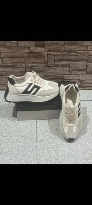 Zapatillas deportivas con un diseño moderno y cómodo. - Combinación de colores beige y negro. - Materiales de calidad para mayor durabilidad. - Suela robusta para un buen agarre.