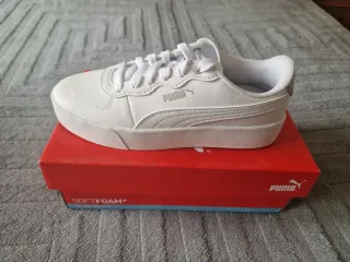 Zapatillas blancas de mujer con plataforma de 3,5 cm, muy estilosas. Modelo: Cruise Rider Metallic Wns Código del producto (PNC): 383126-02 👍Estado impecable. Usadas solo un par de veces. La suela presenta leves señales de contacto con el suelo, por lo que indico el estado como 9/10. El precio original en tienda actualmente es de aproximadamente 100 €. 🤍Color: blanco con pequeños detalles en beige y un acento metálico en el talón. 💫Comodidad ideal para looks diarios. Perfectas para combinar con vaqueros, pantalones o vestidos. 🔎Material exterior: material textil y piel natural (ante) 📏Talla: 42 (27 cm)