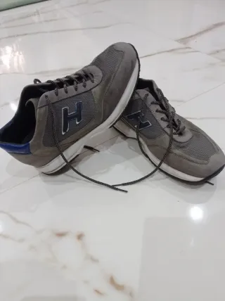 Zapatillas deportivas Hogan para hombre. - Diseño moderno en tonos grises. - Detalle en color azul en el talón y logo. - Cierre con cordones.
