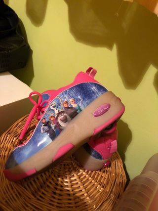 Zapatillas con ruedas rosas de la pelicula Frozen, tiene luces, talla 36