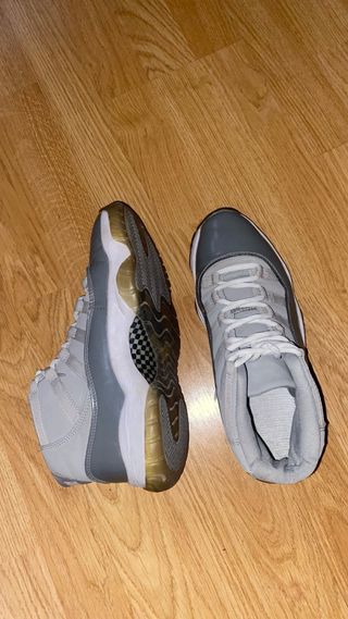 Zapatillas deportivas de la marca Jordan 11 en color gris. ORIGINALES! - Diseño de caña alta. - Cierre con cordones blancos. - Detalle de charol brillante en la puntera y el talón.