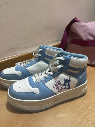 Zapatillas altas con diseño inspirado en Stitch. Perfectas para los fans de Disney. - Cierre de cordones. - Suela gruesa. - Estampado de personajes en el lateral.