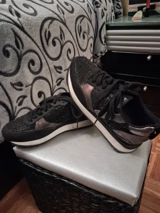 Zapatillas Gioseppo deportivas con un diseño llamativo y detalles brillantes. - Parte superior cubierta de pedrería. - Detalles laterales en tono plateado. - Suela blanca y negra. - número 37