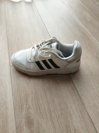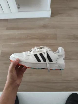 Zapatillas deportivas Adidas Hoops 2.0 en excelente estado, casi nuevas. - Diseño moderno y versátil. - Cierre con cordones. - Suela con detalles de colores.