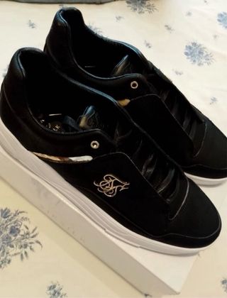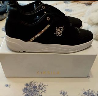Zapatillas SikSilk de color negro con detalles dorados. - Diseño moderno. - Logo de la marca en dorado.