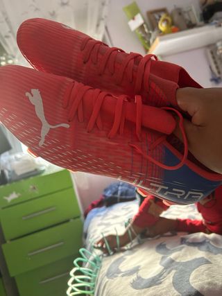 Zapatillas de fútbol Puma modelo Ultra en color rojo y azul. Se encuentran en excelente estado, como nuevas. - Diseño moderno y llamativo. - Suela diseñada para césped artificial o natural. precio negociable