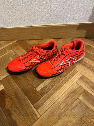 Zapatillas de fútbol sala en color rojo. - Diseño deportivo con detalles blancos. - Cierre de cordones y velcro.