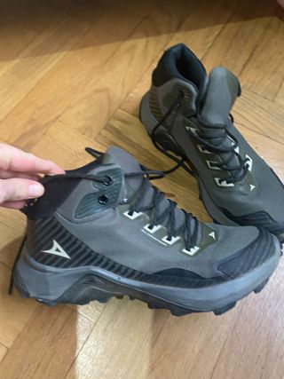 Zapatillas de montaña para mujer con un diseño moderno y funcional. - Combinación de colores verde y negro. - Caña alta para mayor sujeción. - Suela con buen agarre. - All conditions (todo terreno y condiciones) - Se usaron por 10 días