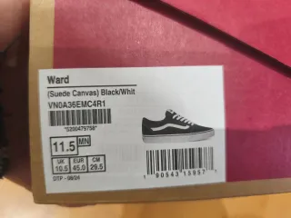 Zapatillas Vans Ward modelo Suede Canvas en color negro y blanco. Han sido usadas una sola vez y se encuentran como nuevas. - Modelo: Ward - Material: Suede Canvas - Color: Black/White - Talla UK: 10.5 - Talla EUR: 45.0 - Talla CM: 29.5 - Código de modelo: VN0A36EMC4R1 - Fecha de fabricación: 08/24