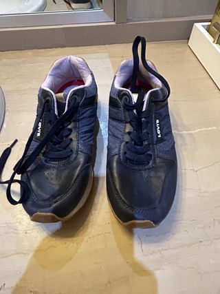 Zapatillas deportivas de la marca Levi's. - Diseño con paneles en contraste - Cierre de cordones. - Detalle de logo en el lateral. - De piel en color azul marino. son comodisimas para andar. - ideales para cualquier look y con ellas además de ir cómoda vas vestida con estilo