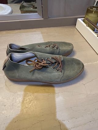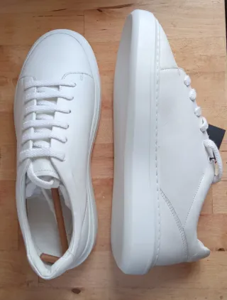 - Precio original 89,95 - Cuero auténtico. - Super elegantes, para vestimenta informal. - Son un número 40 pero amplio. Mi hijo usa un 41 y los notaba grandes, aunque tiene un pie estrecho. - Color blanco. - Cierre con cordones. - Suela de goma.