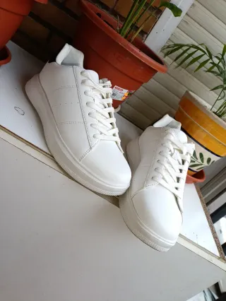 Zapatillas deportivas blancas,un clásico reinventado. Perfectas para el día a día. - Diseño icónico. - Cierre con cordones. - Suela de goma. - Incluyen etiqueta. Están nuevas únicamente puestas en la tienda. Hago envíos por correos y venta en persona. Puedo acercarme a brenes, san jose de la Rinconada, Sevilla santa justa y Nervión!