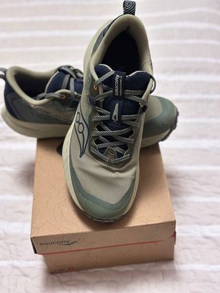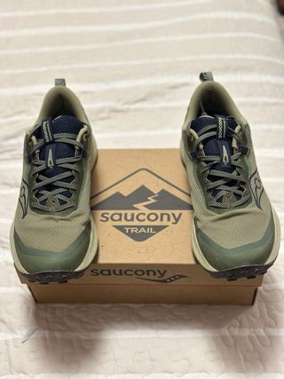 Zapatillas de trail running Saucony Peregrine 15 con tecnología Gore-Tex. - Color verde oliva. - Cierre de cordones. - Suela de goma para mayor tracción.