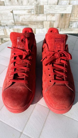 Zapatillas Adidas Stan Smith – Edición limitada – Color rojo Zapatillas Adidas Stan Smith de edición limitada en un llamativo color rojo, ideales para quienes buscan un modelo clásico con un toque original. Confeccionadas en ante y en muy buen estado. • Modelo Stan Smith. • Material exterior de ante de alta calidad. • Cordones a juego para un acabado uniforme. • Detalle del logotipo en la lengüeta. • Talla: 47 ⅓. Un modelo exclusivo, cómodo y versátil, perfecto para destacar en cualquier conjunto casual.