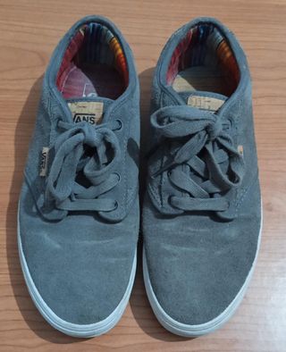 Zapatillas Vans de ante en color gris. El interior tiene un estampado colorido. - Cierre con cordones. - Suela de goma blanca.