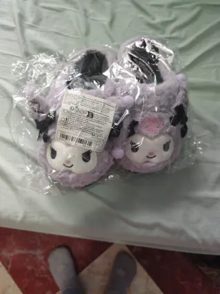 Adorables zapatillas de Kuromi, perfectas para estar cómodo en casa. Su diseño suave y tierno las hace ideales. No se han usado , solo probado. - Es un 36-37, pero queda mejor en un 36, yo tengo la 37 y me quedan pequeñas. - Detalle de orejas y cara de Kuromi. - Materiales de felpa para mayor calidez. - Suela antideslizante para seguridad.