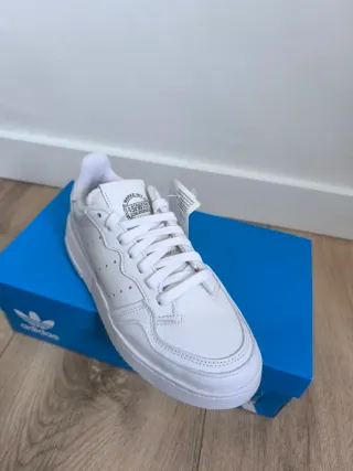 Zapatillas Adidas supercourt 38 blancas nuevas Modelo Adidas originals supercourt / White Guia de tallas 38 EUR / 5'5 US / 5UK / 23'5 cm Zapatillas estilo casual, totalmente blancas, super bonitas, modelo original que combina perfectamente con todo, materiales de la mejor calidad y detalles muy cuidados, logo clásico de Adidas. Tal como se ve en las fotos. Nuevas con etiquetas. Sneakers Adidas, zapatillas blancas perfectas para vestir, siempre una buena opción tener en el armario