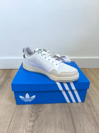 Zapatillas Adidas NY 90 Talla 44 y 2/3 blancas de piel Zapatillas Adidas NY 90 en color blanco. Diseño super original y bonito talla 44. Guia de tallas 44 y 2/3 EUR / 10'5 US / 10 UK / 28,5 m Modelo Adidas NY 90 color blanco y detalles en verde. Zapatillas estilo casual de la marca adidas con logo antiguo.material de cuero y ante. Detalles muy cuidados. Suela de goma cómoda. Cierre de cordones. Totalmente nuevas conserva etiquetas y caja original en perfecto estado. Tal como se ve en fotos, compradas en tienda adidas oficial, conserva ticket de compra