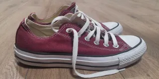 Zapatillas de lona de corte bajo en color granate marca converse. Apenas usadas porque me quedan pequeñas - Cierre con cordones blancos. - Suela de goma blanca. - Detalle de costuras blancas.