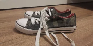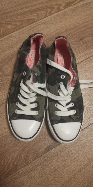 Zapatillas de la marca Tenth con un diseño de camuflaje seminuevas - Estilo deportivo bajo. - Cierre con cordones blancos. - Interior en color rosa.