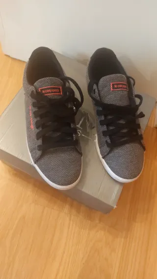 Zapatillas Le Coq Sportif a estrenar. Con etiquetas ( Fotos) - Diseño moderno en gris y negro. Logos resaltando en tono coral. - Cierre con cordones.