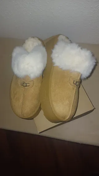 Cómodas zapatillas de estar por casa. - Exterior de ante. - Forro interior de pelo sintético. - Suela gruesa.