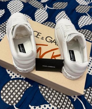 Se venden sneakers Dolce & Gabbana originales, color blanco, talla 40. Fabricados en piel de alta calidad, en perfecto estado y con muy poco uso, prácticamente como nuevos. Incluyen factura original como verificación de autenticidad. Diseño elegante y versátil, ideales para looks casuales o más formales. Se entregan con su caja original. Más información por mensaje privado.