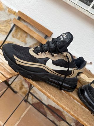 Zapatillas deportivas Nike Air 270 React en tonos negro y beige totalmente nuevas me las regalaron por navidad y no me acaban de acoplar al pie estan nuevas 2 usos apenas - Diseño moderno y cómodo. - Logo de Nike en el lateral. - Detalle de la unidad Air Max en la suela.