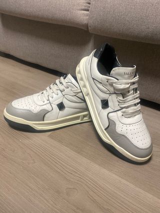 Zapatillas de Valentino Garavani modelo One Stud. Tiene un descosido pequeño en la parte trasera pero no se nota , ver la ultima foto , por lo demas están perfectas - Diseño en blanco y gris. - Detalle de tachuelas. - Suela de goma.