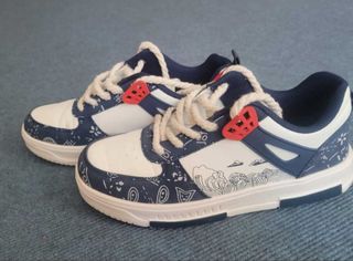 Zapatillas deportivas de la marca Shein en talla 41. Presentan un diseño moderno con detalles en azul y blanco. - Cierre con cordones. - Suela blanca. - Estampado de paisley y diseño de olas en los laterales.