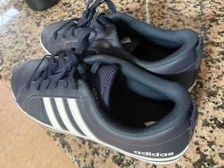 Zapatillas deportivas Adidas en color azul marino con detalles blancos. - Diseño clásico de tres rayas. - Cierre con cordones. - Logo de Adidas en la lengüeta y el talón.