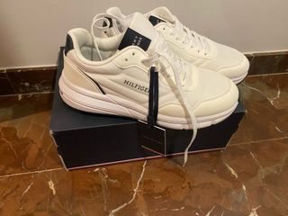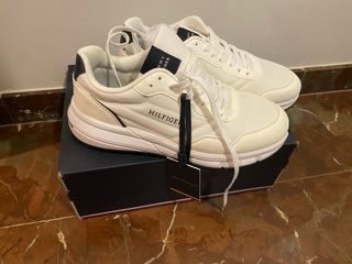 Zapatillas de la marca Tommy Hilfiger, nuevas a estrenar, en color blanco y talla 40. Un calzado moderno y cómodo. - Diseño deportivo. - Cierre con cordones. - Detalle de logo en el lateral.