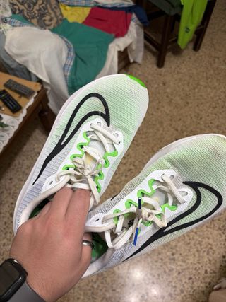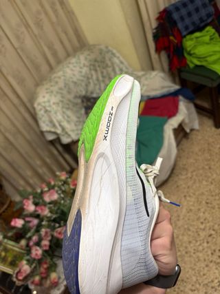 Zapatillas deportivas Nike Zoom Fly 5 en colores verde y blanco. Precio negociable - Diseño moderno y ligero. - Detalles en verde neón. - Swoosh característico de Nike.