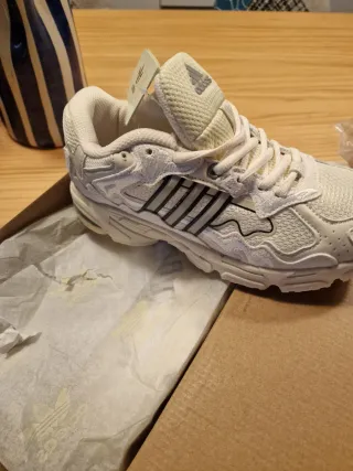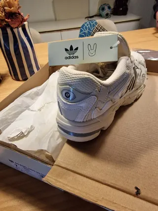 Zapatillas de la marca Adidas en color beige. Bad Bunny - Diseño moderno y cómodo. - Detalle de ojo en el lateral. - Incluye etiqueta original.