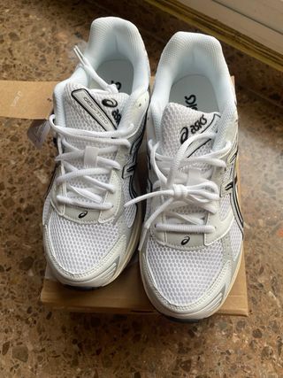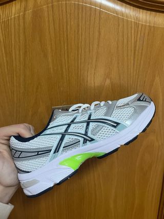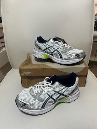 Zapatillas deportivas Asics Gel en color plata y blanco. Perfectas para correr o para el día a día. Talla 40 sin estrenar