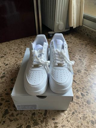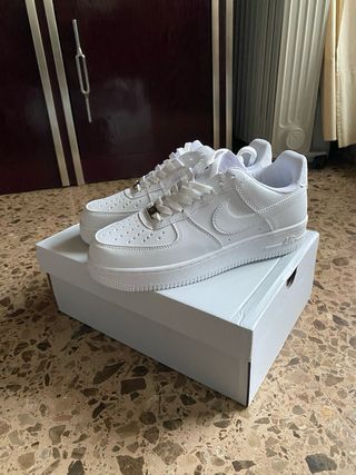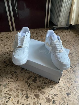Zapatillas Nike Air nuevas sin uso con caja clásicas de color blanco. - Diseño icónico. - Cierre con cordones. - Detalle metálico en los cordones.