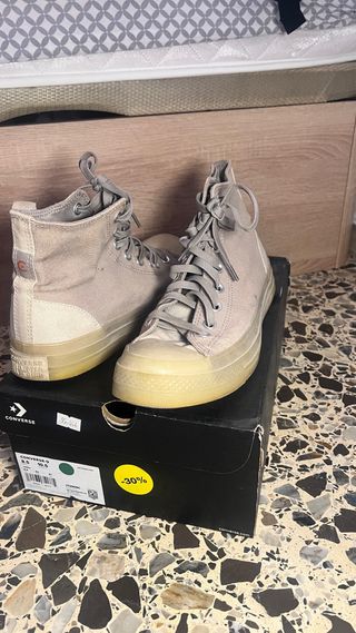 Zapatillas altas de la marca Converse en tonos beige y gris. Un clásico reinventado con un diseño moderno. - Cierre de cordones. - Detalle de logo circular en el lateral. - Suela de goma translúcida. Lo he usado 2 veces