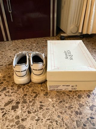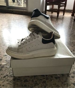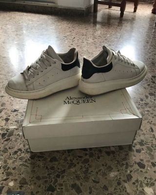 Zapatillas de Alexander McQueen con un diseño moderno y llamativo. Talla 39 con numero de serie - Combinación de colores blanco y negro, usadas sin caja. - Detalle del logo en la parte trasera.