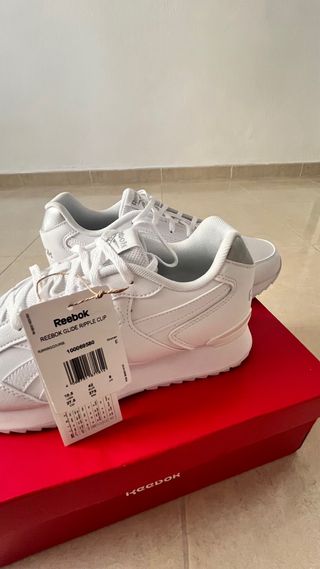 Zapatillas deportivas Reebok modelo Glide Ripple Clip. - Diseño clásico en color blanco. - Detalle en la parte trasera del talón. - Suela con patrón de ondas.