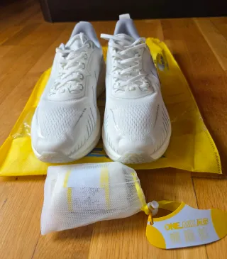 Zapatillas deportivas One Mix color blanco. - Talla 44. - Incluyen bolsa de malla y etiqueta. - Diseño moderno con detalles plateados.