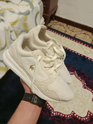 Zapatillas deportivas para niño. - Cierre con cordones. - Diseño moderno y cómodo. - Suela de goma. Muy poco uso de ambas,la beige la suela se ha levantado un poco se aprecia en la foto 39 euros las 2 zapatillas