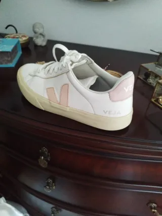 Zapatillas de la marca Veja en color blanco con detalles en rosa. - Diseño de caña baja. - Cierre con cordones. - Suela de goma.