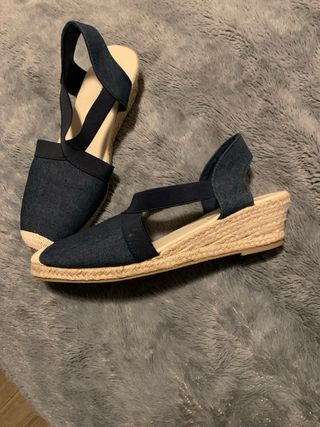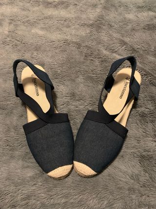 Zapatillas de esparto con diseño moderno. - Material exterior de tela vaquera. - Punta reforzada con esparto. - Tira elástica en el talón para mayor comodidad.