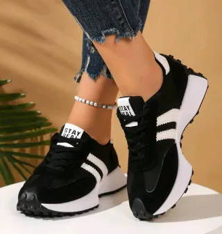 Zapatillas deportivas a estrenar, con un diseño moderno y llamativo. - Combinación de negro y dorado. - Cierre con cordones. - Suela de goma. - Marca Lets Go.