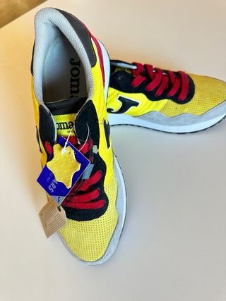 Zapatillas deportivas Joma Freestyle con un diseño llamativo. - Combinación de colores amarillo y rojo. - Detalle de logo Joma en contraste. - Cordones rojos. - Suela de goma.