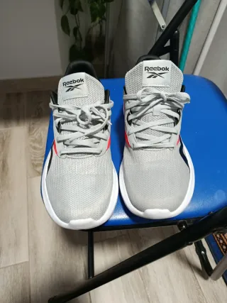 Zapatillas deportivas Reebok para hombre. - Diseño moderno en malla. - Detalles en color rojo y negro. - Suela blanca.