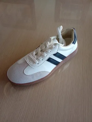 Zapatillas Bershka con un diseño floral único. - Color blanco con detalles florales. - Suela de goma. - Cierre con cordones.